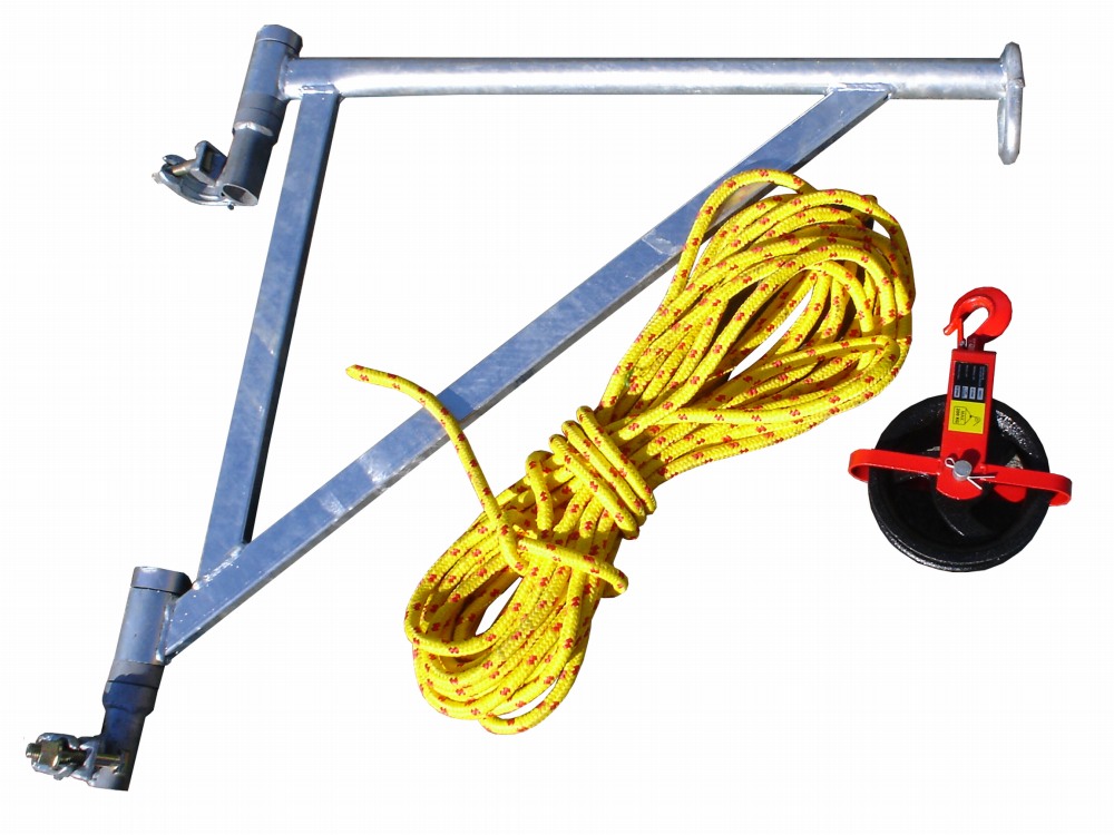 Výložník s kladkou slouží pro usnadnění ruční dopravy materiálu do vyšších pater lešení.