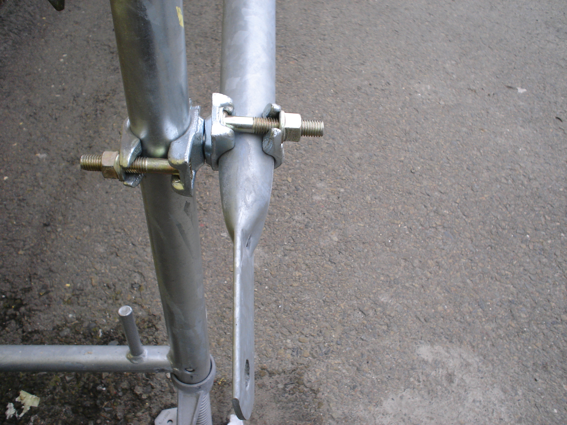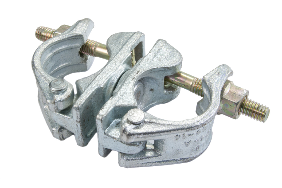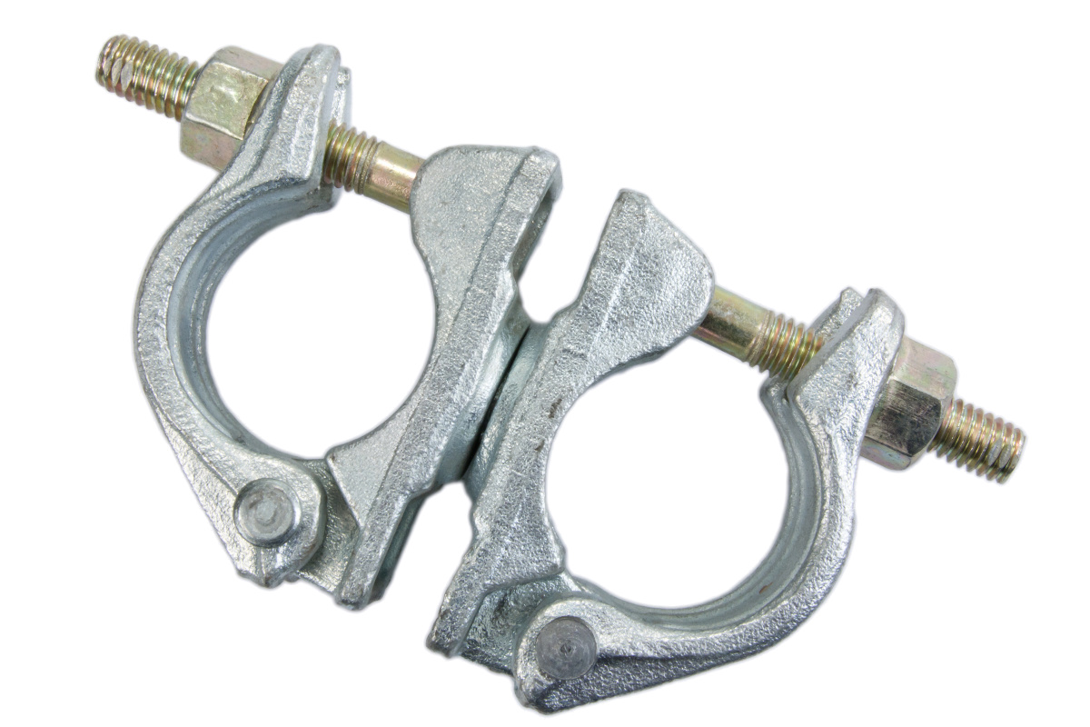 Oceľová, pozinkovaná, kovaná v zápustke. Pre spojenie lešenárskych trubiek v ľubovoľnom uhle. Prstencová matica pre kľúč 22 mm. Prípustné zaťaženie 6 kN (600 kg). Uťahovací moment 50 Nm.