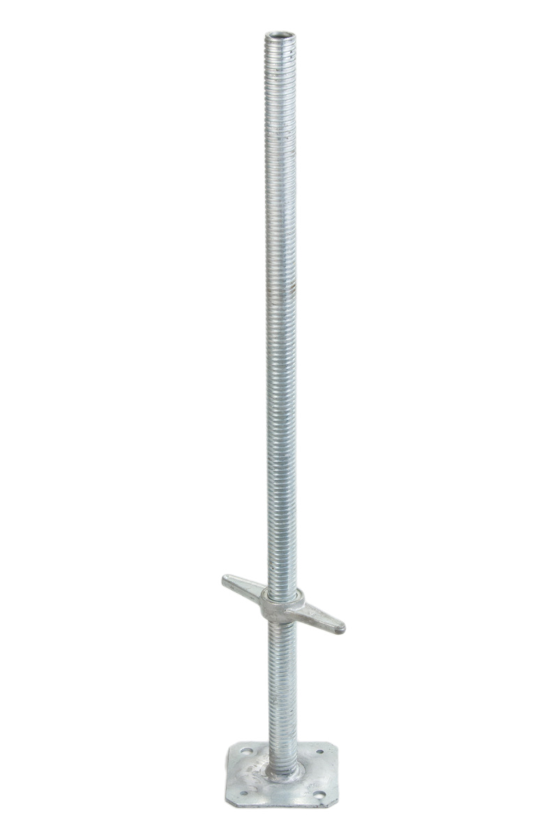 Oceľová, pozinkovaná, s maticou opatrenou rukoväťou, rýchlo idúci závit, základová doska nánožky 150 mm x 150 mm. Blokovanie proti vyskrutkovaniu matice. Možno použiť ako hlavovú vretenovú pätku.
