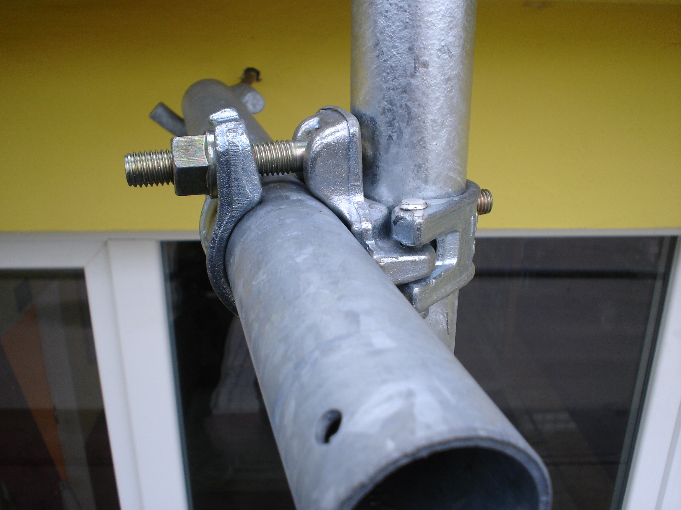 Oceľová, pozinkovaná, kovaná v zápustke. Pre pravouhlé spojenie lešenárskych trubiek. Prstencová matica pre kľúč 22 mm. Schválené ako samostatná spojka pre zaťaženie 9 kN (900 kg), alebo ako dvojitá spojka pre zaťaženie 15 kN (1500 kg). Uťahovací moment 50 Nm.