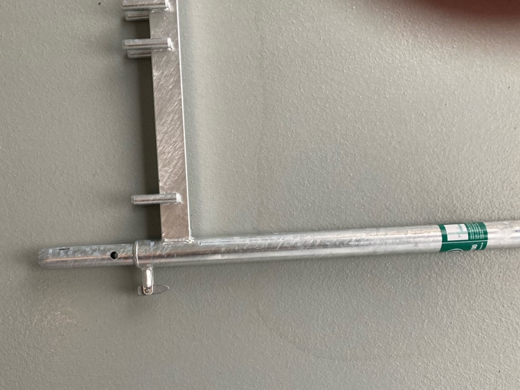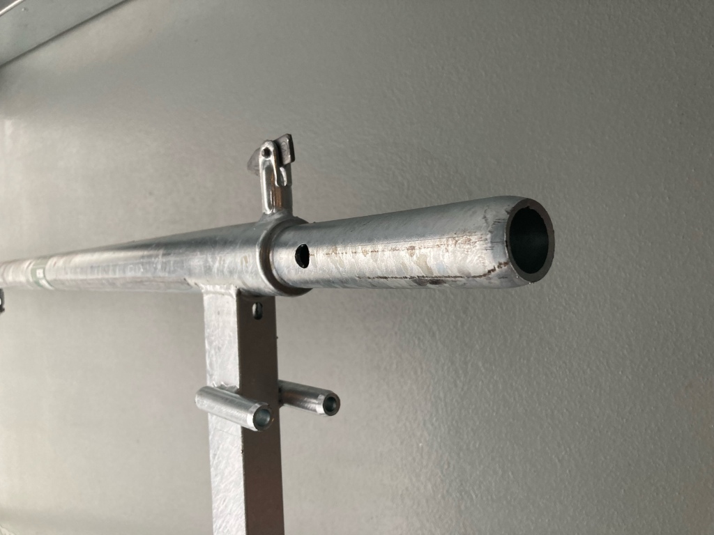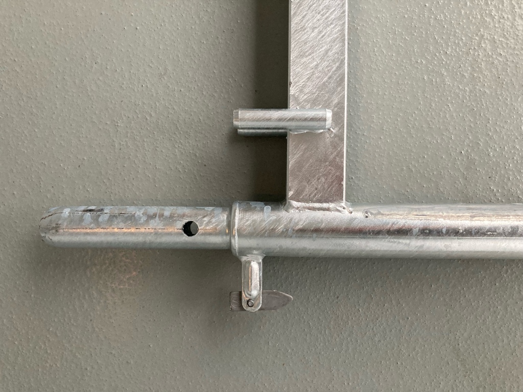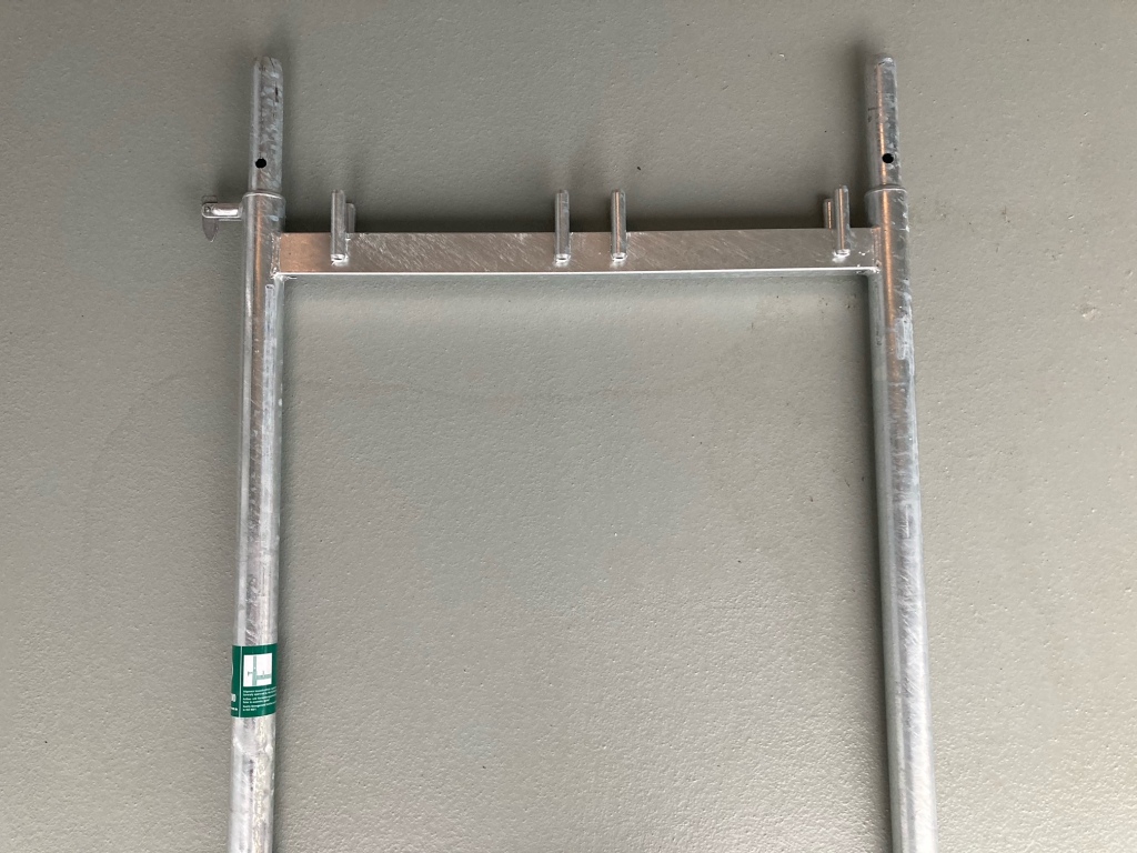 Oceľová rúrka Ø 48,3 mm x 2,7 mm, žiarovo pozinkovaná s guľatými tŕňmi pre zavesenie 2 drevených resp. kovových podláh. Pre ťahovo pevné spojenie v hornej a spodnej časti prevŕtané. Samoistiace spojky so sklopným čapom pre upevnenie zábradlia a diagonál.
